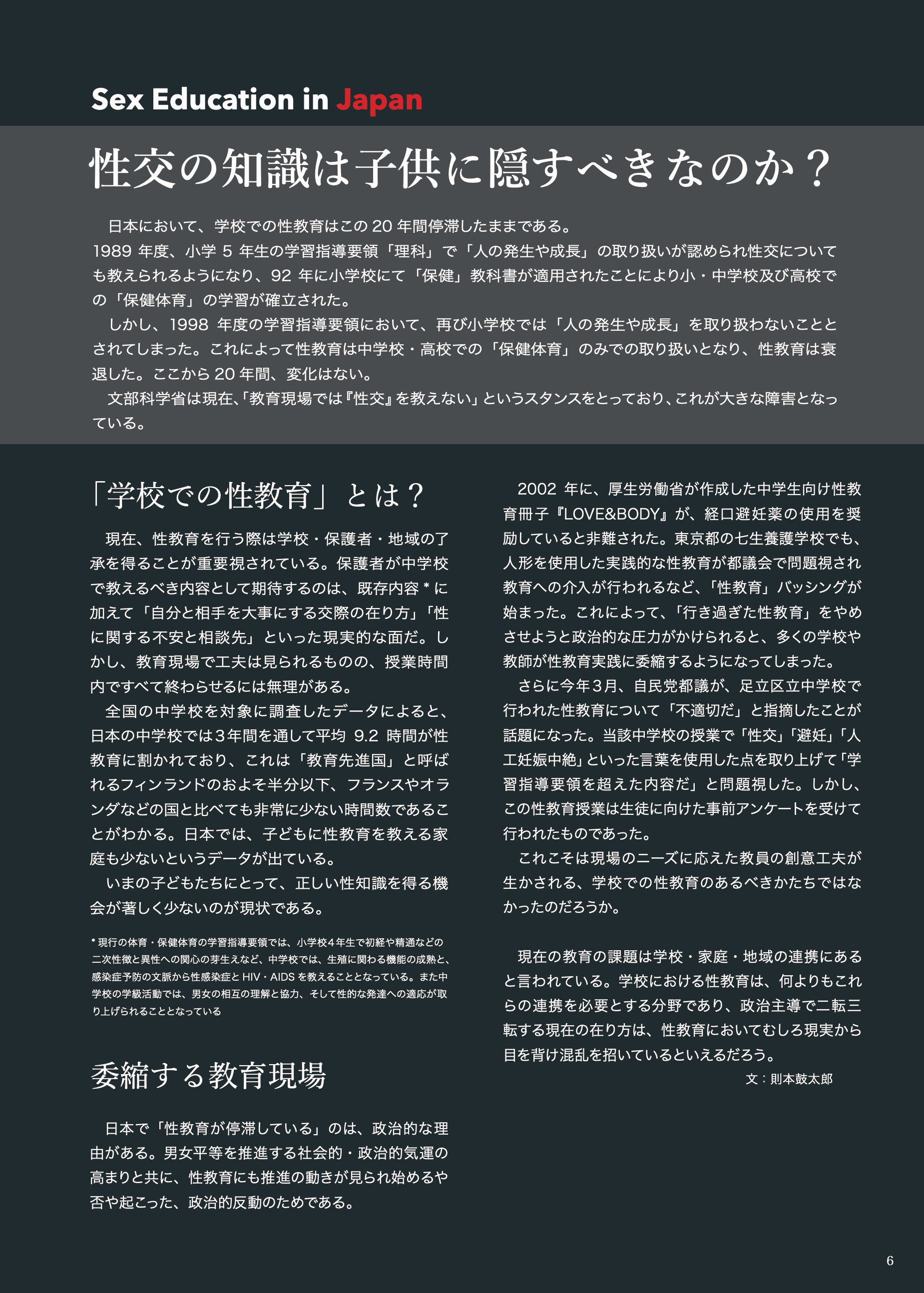 学生が企画立案したプロジェクトに資金援助をする、東海大学の「東海大学ユニークプロジェクト」制度によって結成した学生プロジェクトチームに参加し、性教育を取り扱ったフリーペーパーを共同制作した。